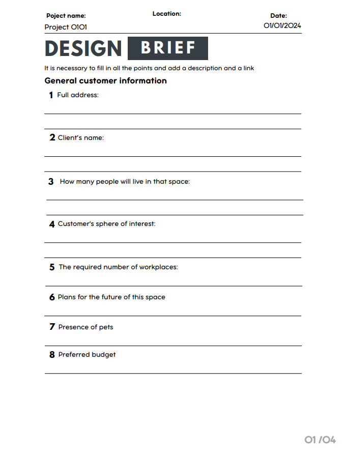 According to the ready-made questionnaire of technical design fill in all the information necessary for the project.
