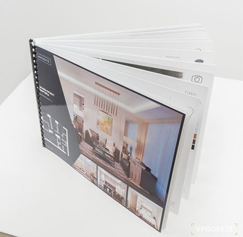 Presentation of the concept with examples, variations of the color scheme and approval of the main idea of the interior